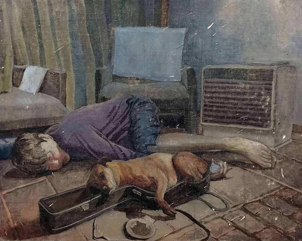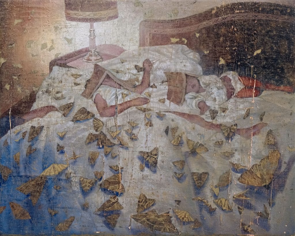 “Mijn waanachtige denken werpt een sinister licht en unheimliche schaduwen tegen een dystopische achtergrond, en roept zo de melancholie van mijn herinneringen op het doek op.” – Shimon Kamada