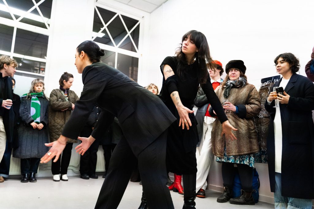 Vrouwenproblemen: Spinning the Mechanisms of Troublemaking (2025) is een sterk voorbeeld van haar veelzijdige en intersectionele praktijk. De performance werd ontwikkeld samen met Andrea Celeste La Forgia, een beeldend kunstenaar die eveneens exposeert in de Prospects-sectie van de beurs. Conceptueel vertrekt het werk vanuit twee onderzoekslijnen die samenkomen in één polyfone vertaling.