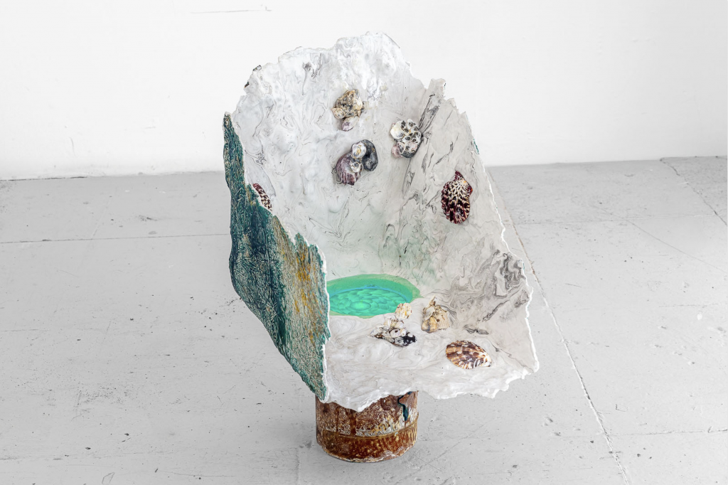 Tijdens haar residentie bij PADA Studios eind 2024 in Barreiro (Portugal), een historisch vertrekpunt van vroege koloniale expedities, ontwikkelde ze de serie 'The Thief of Tides'. Vanuit die context traceerde ze de routes van organismen die meereisden op schepen en schreef ze teksten vanuit hun perspectief. Gevonden schelpen van het nabijgelegen strand kwamen daarbij samen tot wat ze zelf omschrijft als hybride technofossielen, als fossielen van een toekomstig tijdperk die tegelijk biologisch en industrieel aanvoelen.