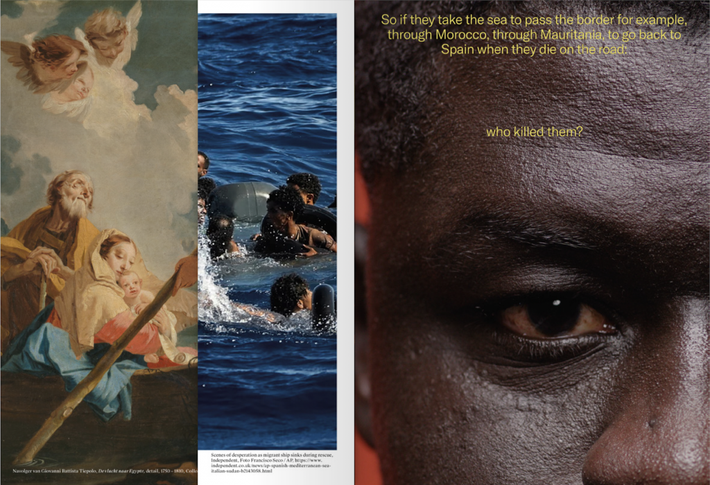 ‘Asiel’ is een gelaagd, visueel-essayistisch boek waarin ik aan de hand van vier pijlers van de Nederlandse identiteit — cultuur, religie, rechtsstaat en economie — heden en verleden met elkaar verbind. Ik combineer eigen beelden met werk uit de collectie van het Rijksmuseum, aangevuld met materiaal uit nieuwsmedia en sociale media. Drie verhaallijnen lopen door elkaar heen: het verhaal van B., die net in Nederland is aangekomen; mijn persoonlijke reis langs cruciale locaties binnen het asielproces; en een onderzoek naar hoe ‘de asielzoeker’ historisch én hedendaags wordt verbeeld.